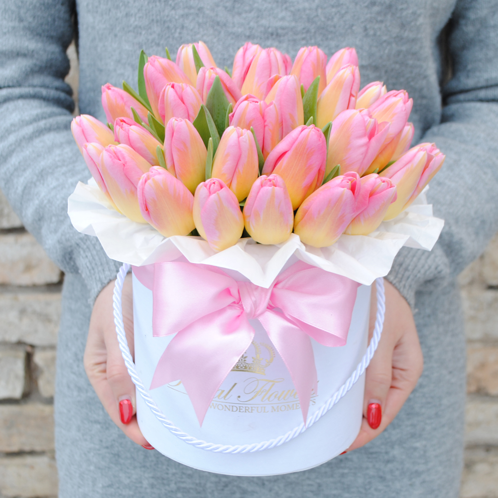 Dėžutėje yra 35vnt. tulpių. Dėl tulpių prašome paskambinti prieš atliekant užsakymą.
